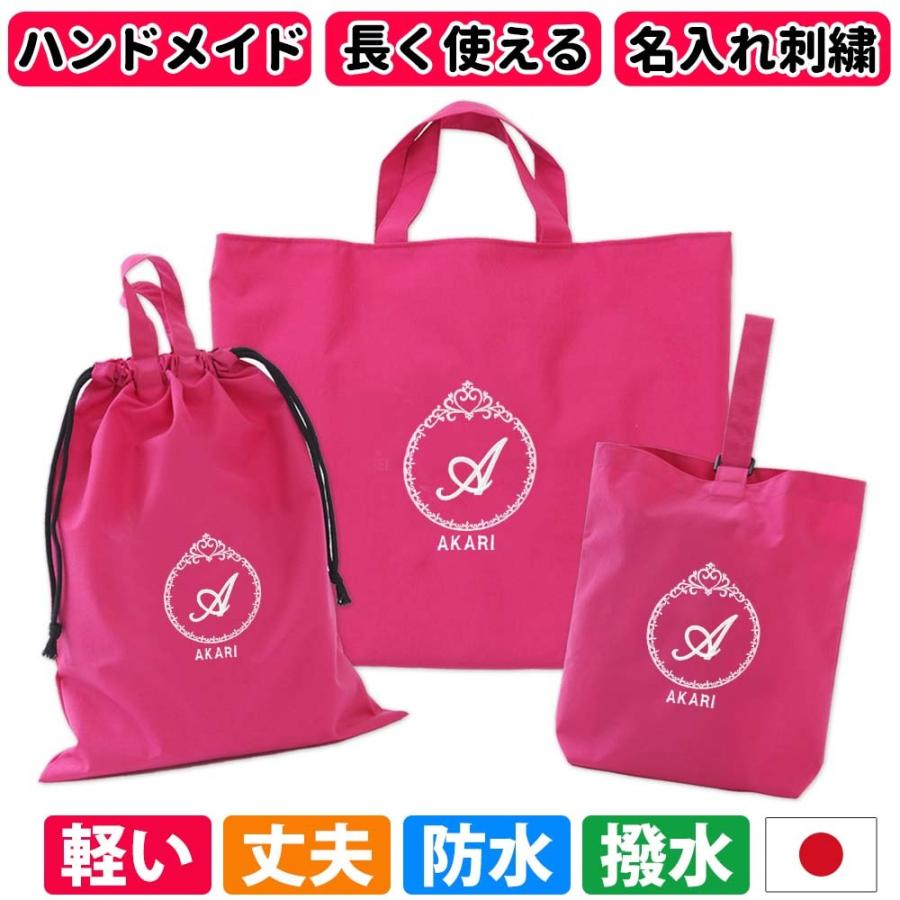 レッスンバッグ シューズケース 秀逸 体操着袋 3点セット 女の子 おしゃれ 撥水 プリンセス おすすめ 人気 ハンドメイド 日本製 ピンク 防水 手作り